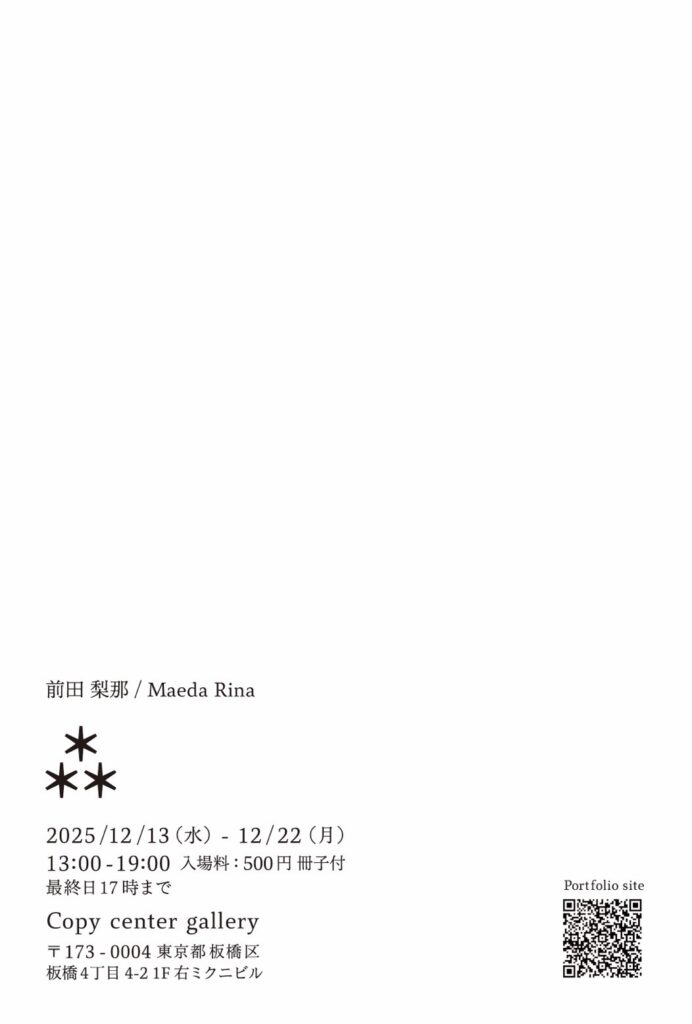 メンバーの前田 梨那の個展が東京都板橋区のcopycenter galleryで開催されます。